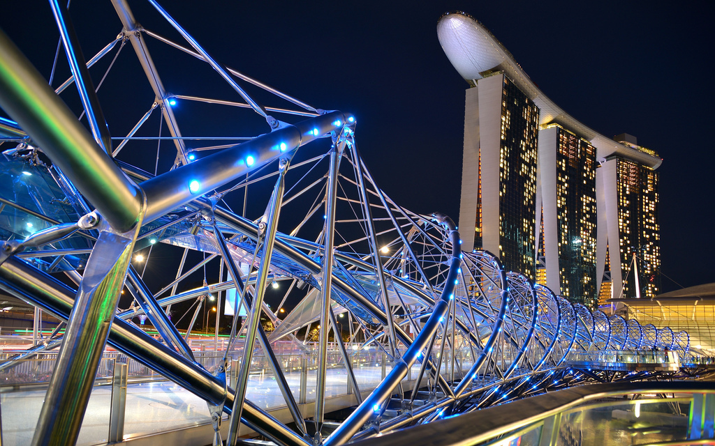 Marina Bay Singapore is an entertainment, commercial and residential area of city built on reclaimed land. Marina Bay Waterfront Promenade is a 3.5 km along-the-bay walkway that brings people across many attractions at Marina Centre, Collyer Quay and the Bayfront. Some of the major Marina Bay attractions are Marina Bay Boat Ride, Helix Bridge connecting Marina Centre to Marina South, Gardens by the Bay, Art Science Museum, Marina Bay Sands Sky Park, Merlion park, Singapore Flyer, Marina Bay Sands Casino, Esplanade - Theatres on the Bay, Spectra at Marina Bay Sands, Marina Bay Golf Course etc.